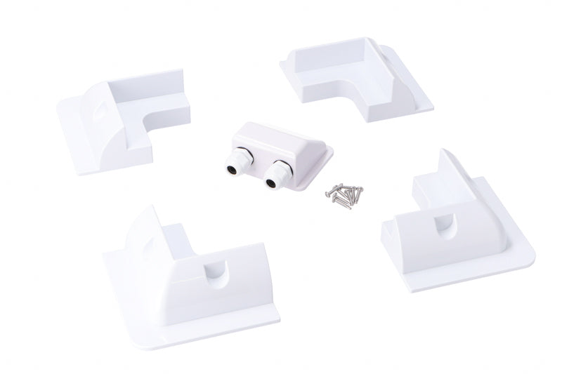 Befestigung Ecken (4 Stück) und Wasserdichte Kabeleinführung für Solarmodule aus solidem ABS Vollkunststoff
