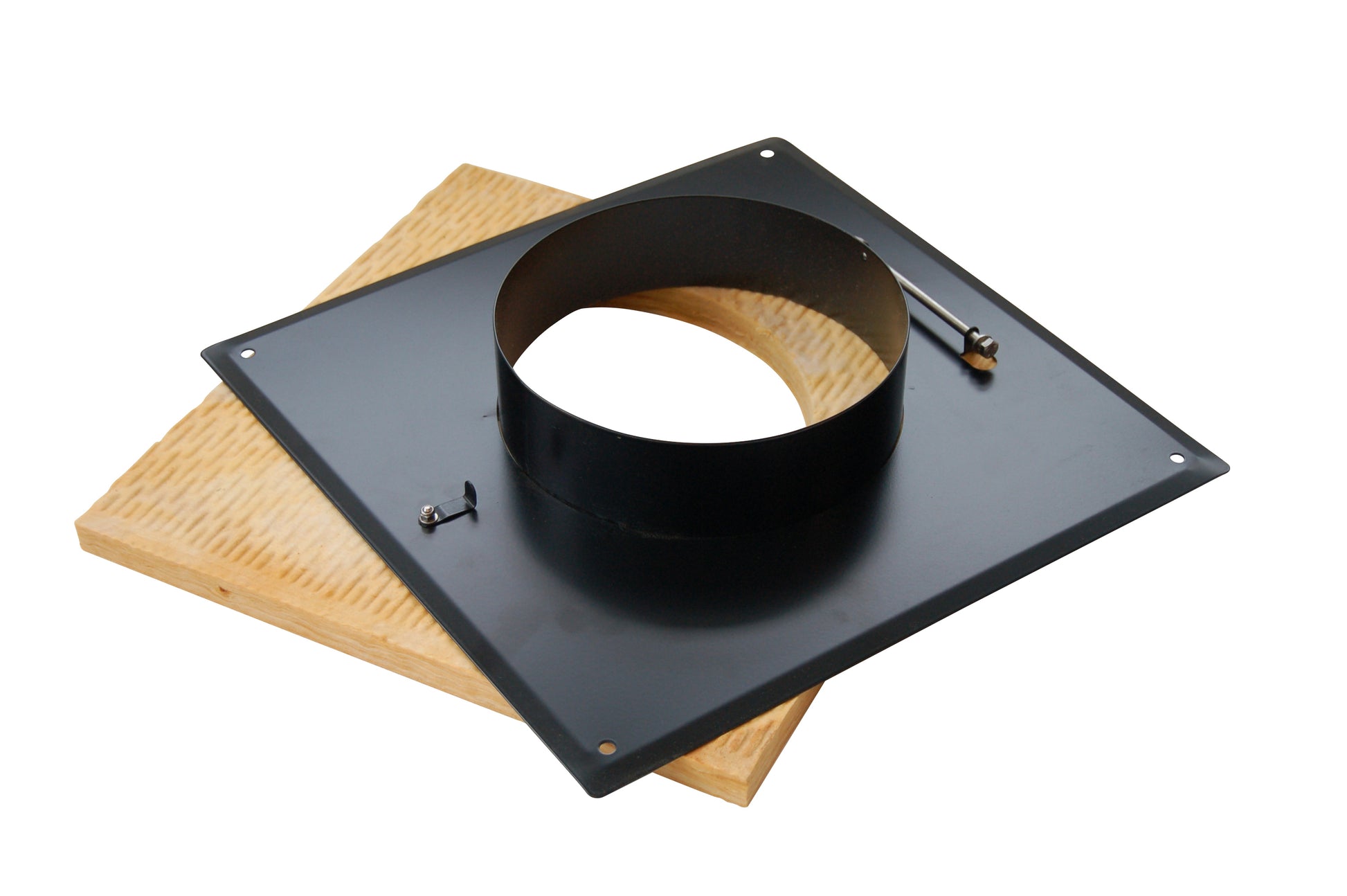 Bei viereckigen Schornsteinmündungen wird der beim Aduro Draft Optimizer beiliegende runde Flansch gegen den für eckige Schornsteinmündungen passende viereckige Flansch ausgetauscht.