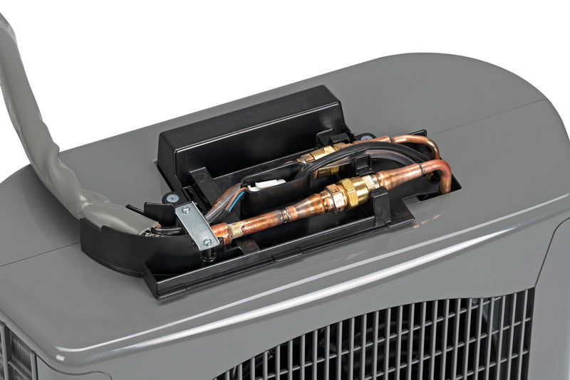 Die Ulisse 13 DCI Eco ist eine mobile Split-Klimaanlage mit einem Innen- und einem Außengerät. Sie können die Klimaanlage mobil einsetzen, während sie mit 24 cm Tiefe kaum Platz einnimmt. Sie ist sowohl für die mobile, wie auch für die feste Installation geeignet. Das Außengerät hat ein Gewicht von 15 kg und lässt sich dank optionalem Halterungssatz an einen Balkon oder Fensterbrett montieren. Ein kleiner Kondenswasser Behälter fängt das nicht verdampfte Kondensat auf, und muss hin und wieder entleert werden. Standardgemäß ist die Klimaanlage mit einer Infrarot-Fernbedienung ausgestattet mit der sich die Anlage einfach und bequem steuern lässt.
