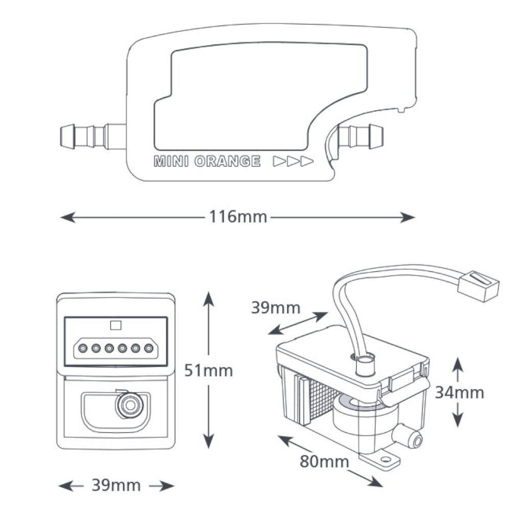 Die Mini-Pumpen bieten maximale Leistung bei minimaler Größe. Sie arbeiten mit einem Schwimmerschalter, der die Pumpe automatisch aktiviert, wenn sich Wasser in der Ablasswanne befindet. Die Mini Orange ist seit ihrer Markteinführung die meistverkaufte Mini-Kondensatpumpe und eignet sich ideal für den Betrieb mit Wand- und Kanalgeräten, Bodenkonvektoren sowie Deckenkassetten. Montiert wird sie in Zwischendecken, hinter Klimageräten oder im Kabelkanal.