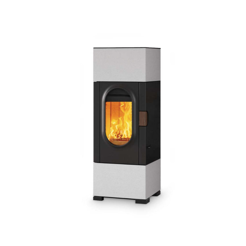 Die abgerundete Ofenscheibe erinnert an ein ovales Bullauge und steht in angenehmen Kontrast zu den ansonsten eher quadratischen Formen