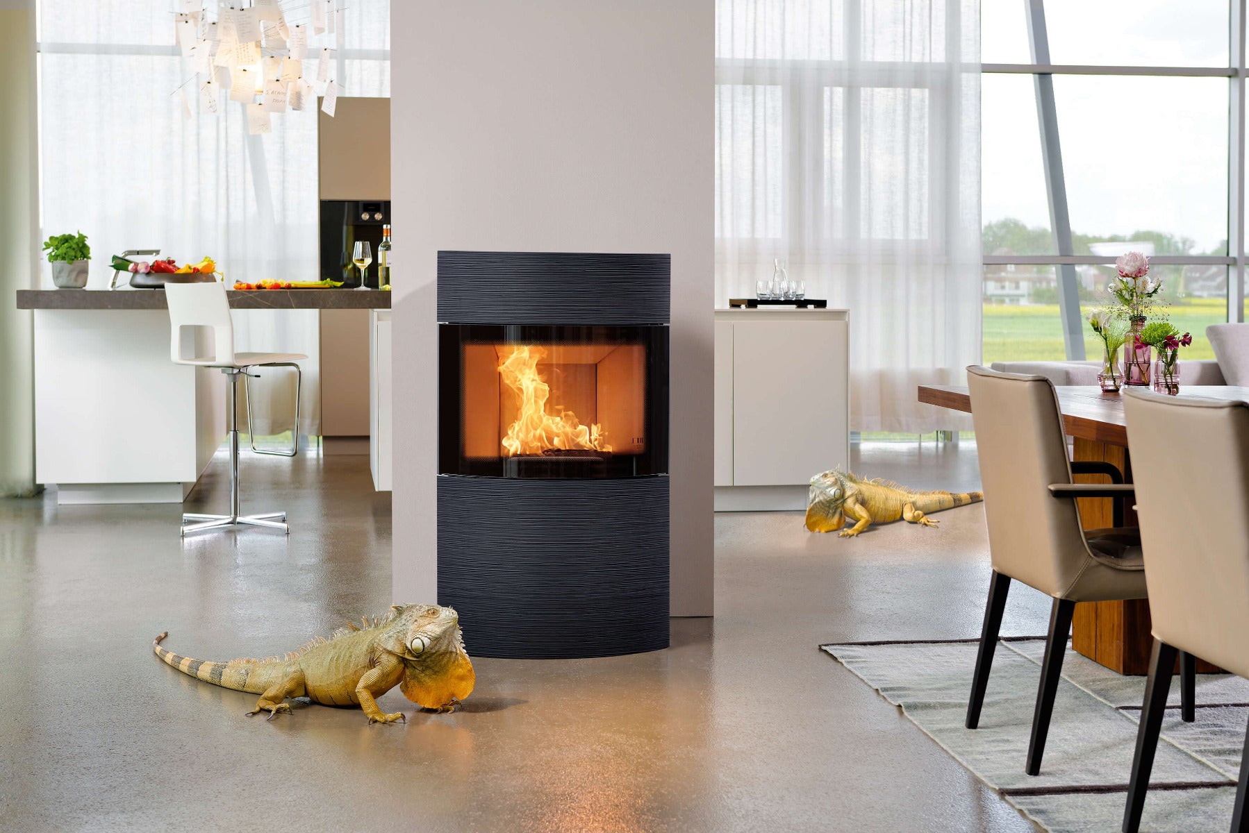 Der Austroflamm Kaminofen FYNN Xtra 2.0 mit Wärmespeichertechnologie und Keramikfront ""Rille-Schwarz"" | Heizen mit 6,0 kW