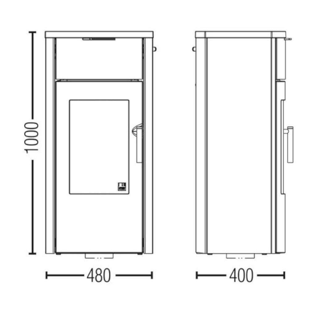 • Jini Xtra Sockel (Kamin erlangt 30 cm mehr an Höhe, externe Luftzufuhr hinten über Sockel)