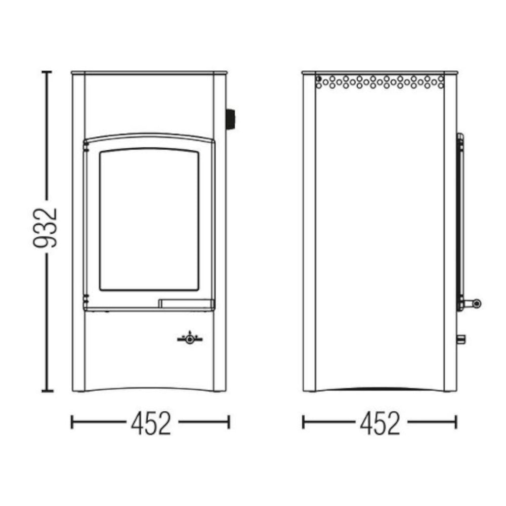 Durch seine kompakte Masse lässt er sich auch in kleineren Räumlichkeiten gut integrieren und bringt diese mit seinen 6,0 kW schnell und langanhaltend auf Temperatur. Sie haben die Wahl, das Ofenrohr nach oben oder nach hinten zu führen.  Beheizt werden sollte der Ofen ausschließlich mit gut getrocknetem Scheitholz oder Holzbriketts.