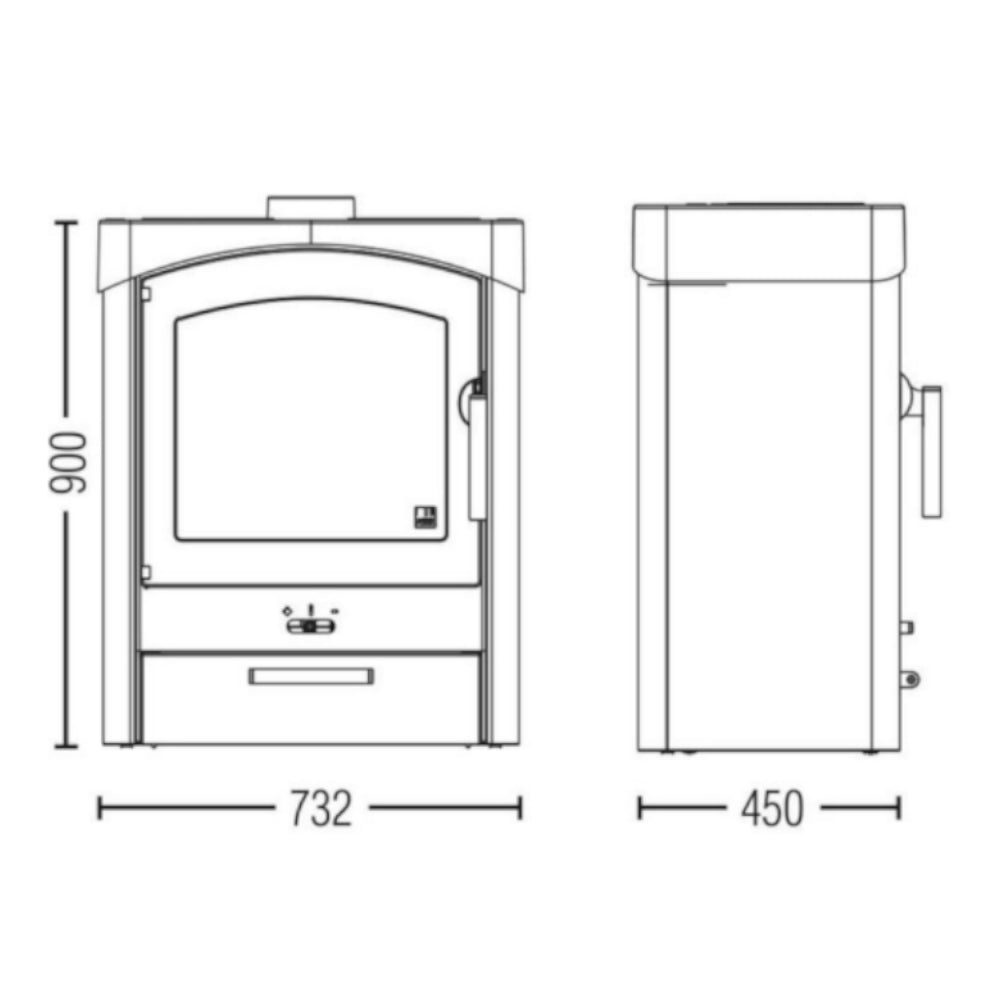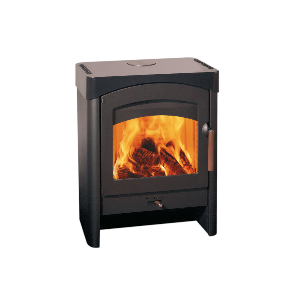 Ein externer Luftanschluss auf der Hinterseite des Ofens ist vorinstalliert und macht ihn deshalb auch für die Benutzung in Niedrigenergie- bzw. Passivhäusern interessant. Die selbstschließende Tür ermöglicht eine Mehrfachbelegung des Schornsteins.