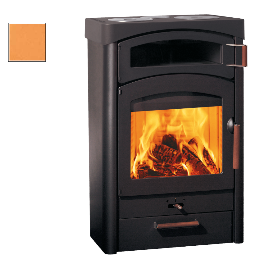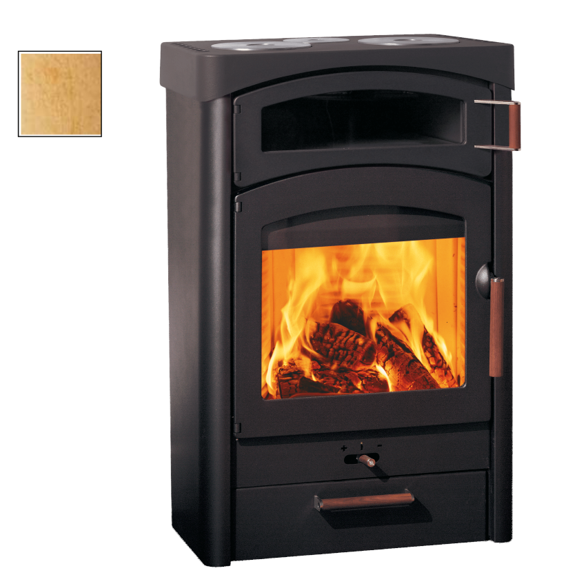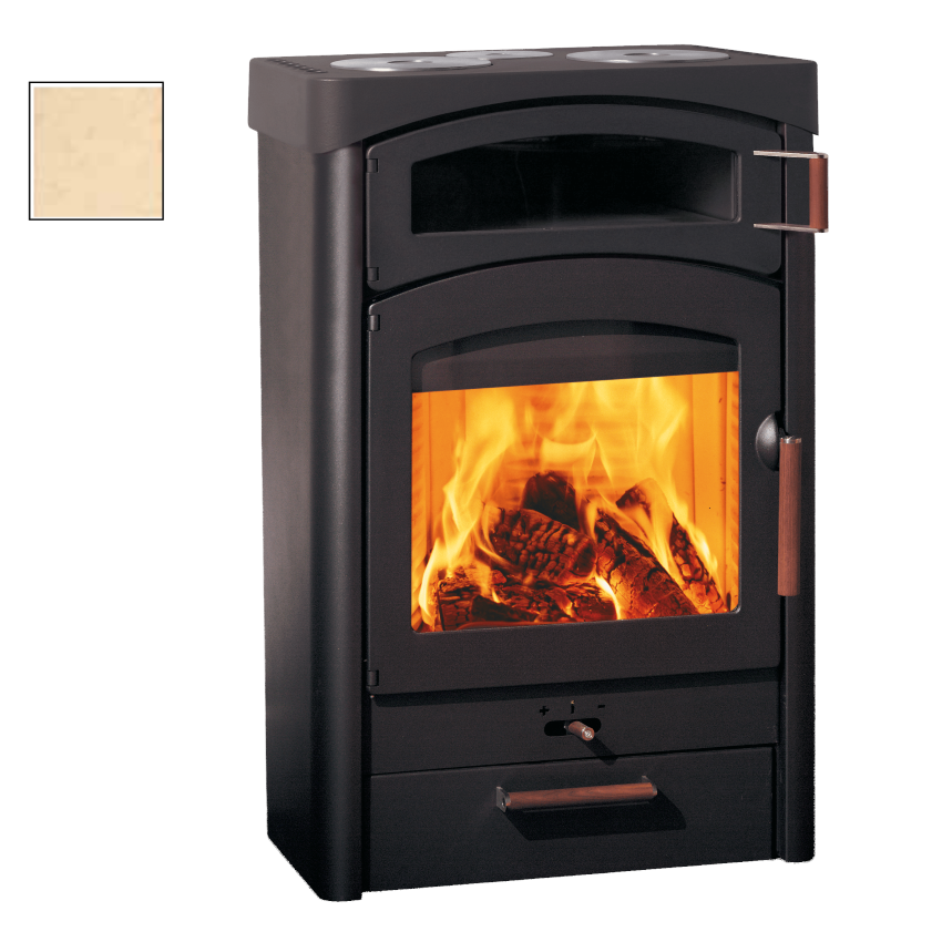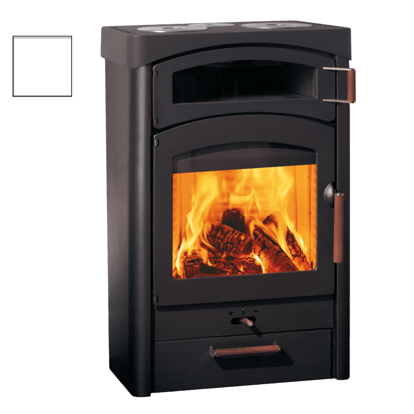 Ein externer Luftanschluss auf der Hinterseite des Ofens ist vorinstalliert und macht ihn deshalb auch für die Benutzung in Niedrigenergie- bzw. Passivhäusern interessant. Die selbstschließende Tür ermöglicht eine Mehrfachbelegung des Schornsteins.
