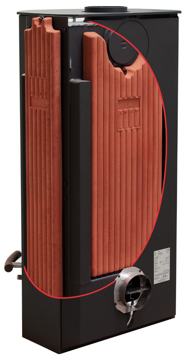 Durch das Heat Memory System von Austroflamm werden bis zu 9h Speicherwärme möglich (und es bleibt trotzdem ein schnelles Heizsystem)!