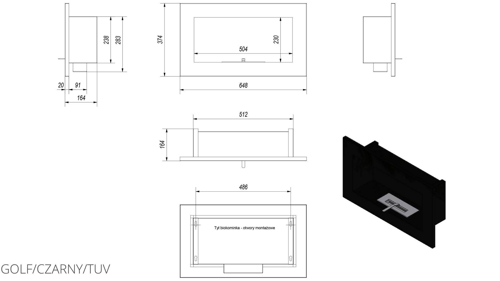 Ethanol Kamin, Bio- / Wandkamin Golf in schwarz | TÜV geprüft | GOLF/CZARNY/TUV