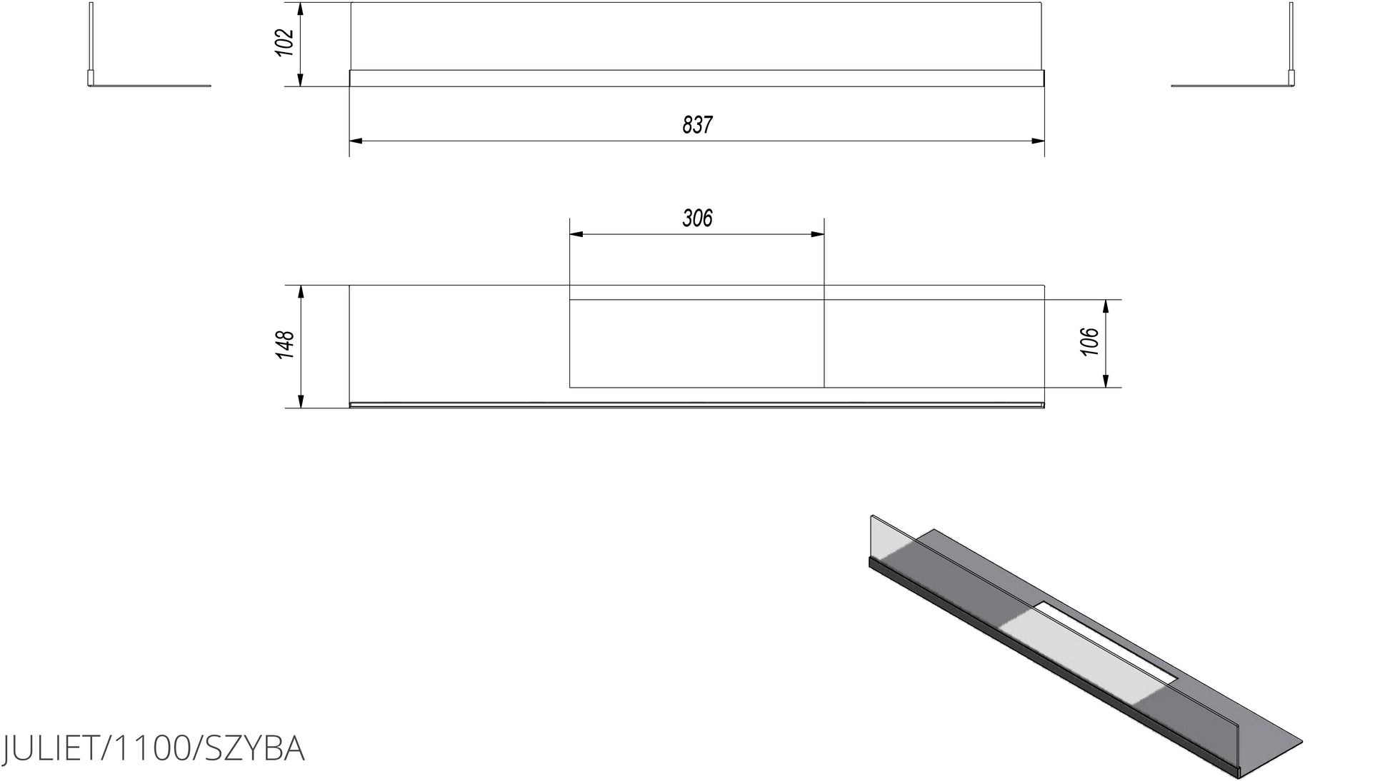 Brennerschutzglas + Sockel für Kratki Ethanolkamine der Juliet 1100 Serie | JULIET/1100/SZYBA