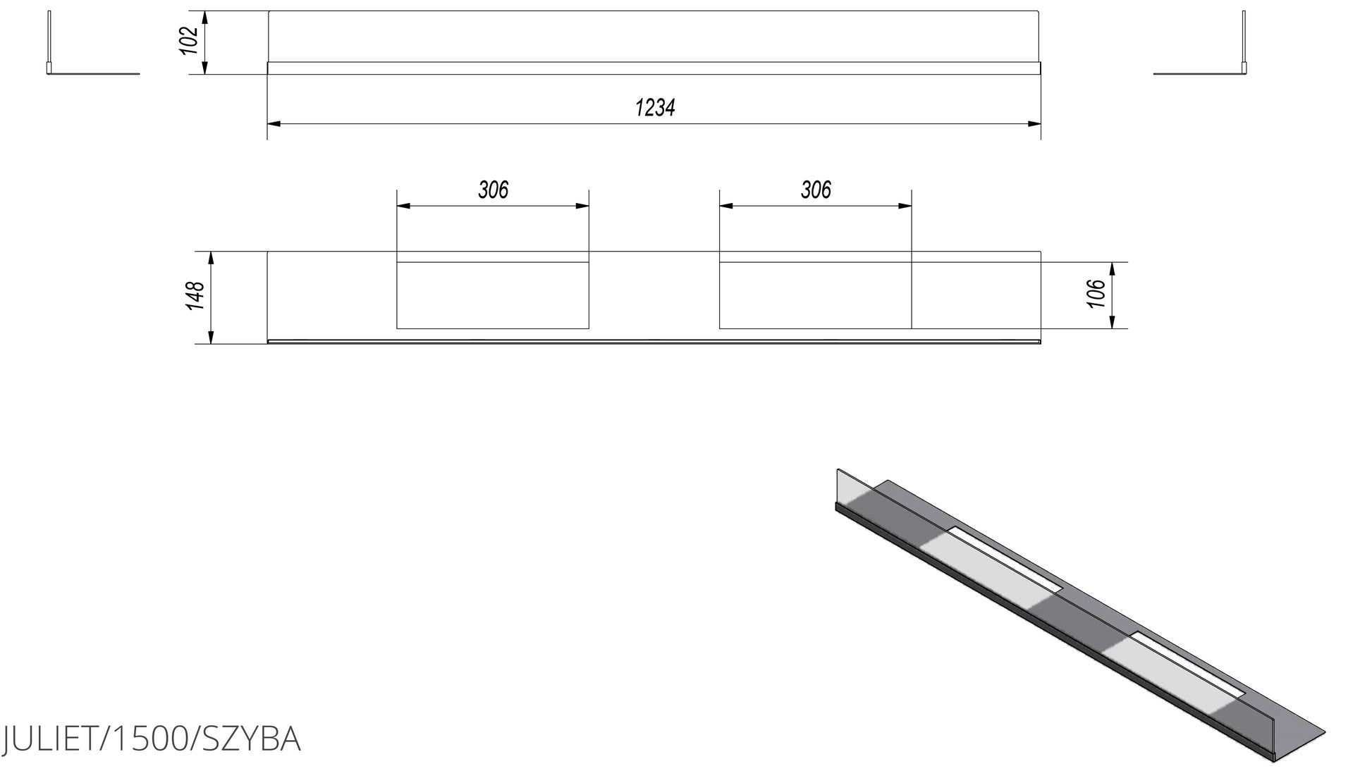 Brennerschutzglas + Sockel für Kratki Ethanolkamine der Juliet 1500 Serie | JULIET/1500/SZYBA