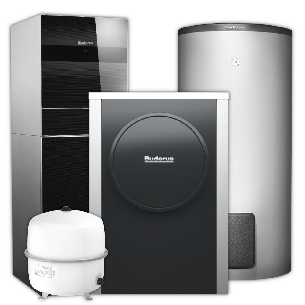 BUDERUS Luft/Wasser-Wärmepumpe mit integriertem Pufferspeicher + Warmwasserspeicher