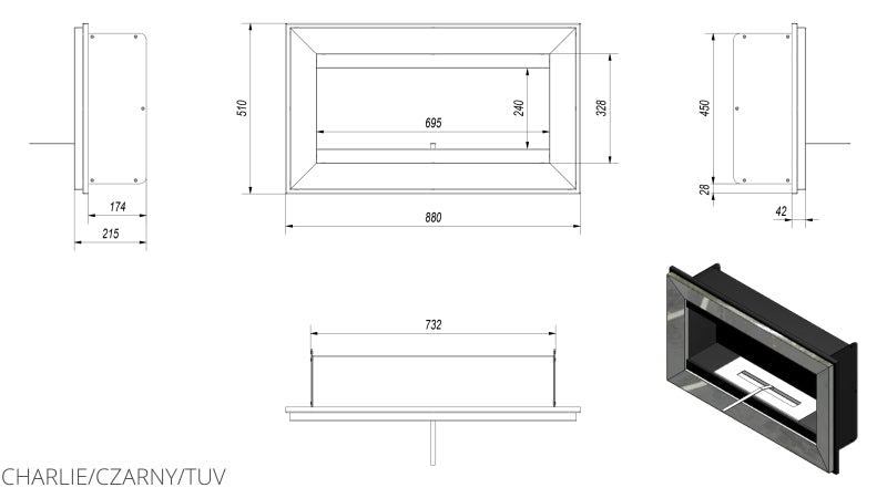 Ethanol Kamin, Bio- / Wandkamin Charlie in schwarz | TÜV geprüft | CHARLIE/CZARNY/TUV