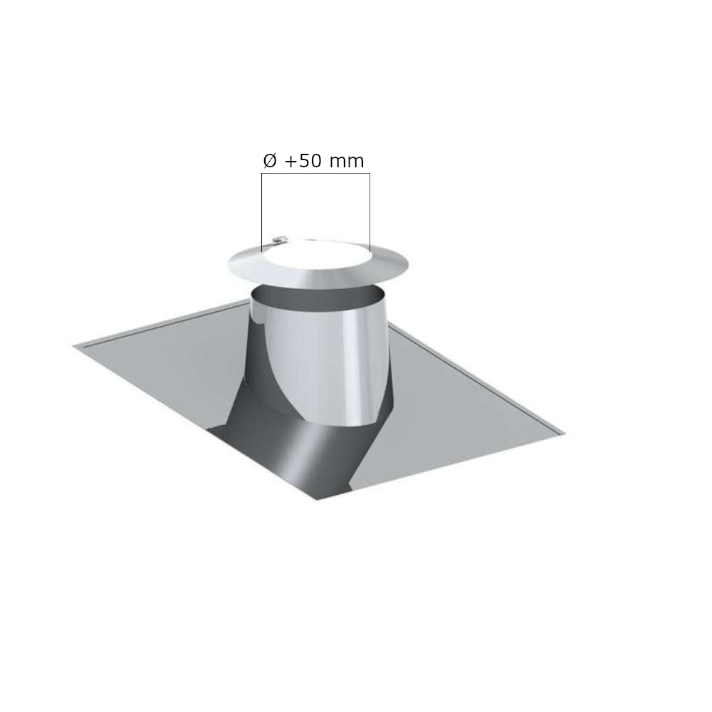 Der Durchmesser des Schornsteins ist Ihr Maß für die Wahl des Wetterkragens. Die Wanddurchführung aus Edelstahl wird benötigt sobald Sie Ihr Schornsteinsystem durch ein Dach mit einem Winkel von 5°-15° führen möchten. Die Durchführung besteht komplett aus Edelstahl und deckt mit seinem Umfang das Loch der Schornsteindurchführung ab.