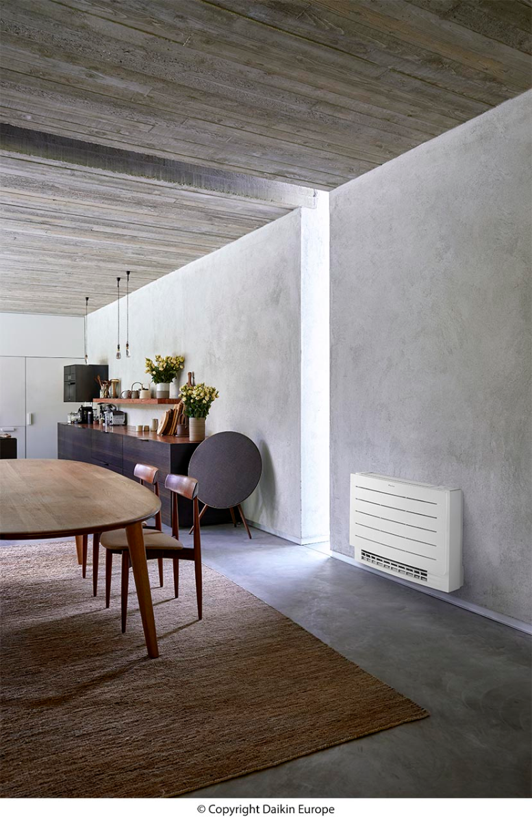 Optimiertes Heizen mit der DAIKIN Perfera Truhe FVXM25A9 und dem Cold Region Außengerät RXTP25R mit 2,5 kW | 8.500 BTU (*Kühlen & ≈ Heizen)