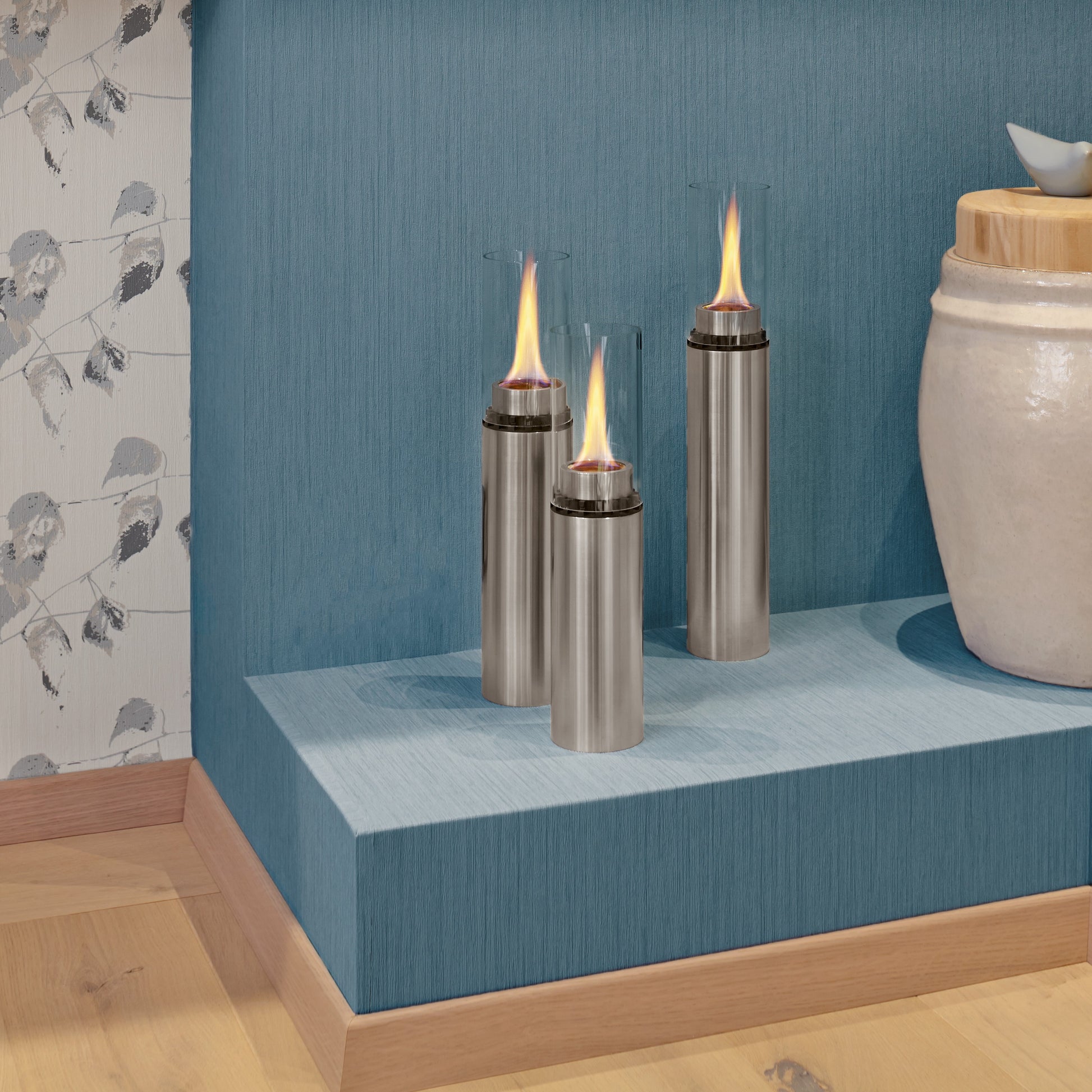 Durch die Verwendung von Bio-Ethanol, das rauch- und rußfrei verbrennt, ermöglicht der La Vela Midi die Vorzüge eines Kaminfeuers mit einer Vielzahl von Installationsmöglichkeiten, die ein klassischer Kamin in dieser Form nicht bieten kann. Die Brennerflamme, die sich auf dem Kamingehäuse aus gebürstetem Edelstahl befindet, wird von einem Glaszylinder umgeben, der sowohl der Sicherheit des Kamins dient als auch beeindruckende Lichtakzente bietet.
