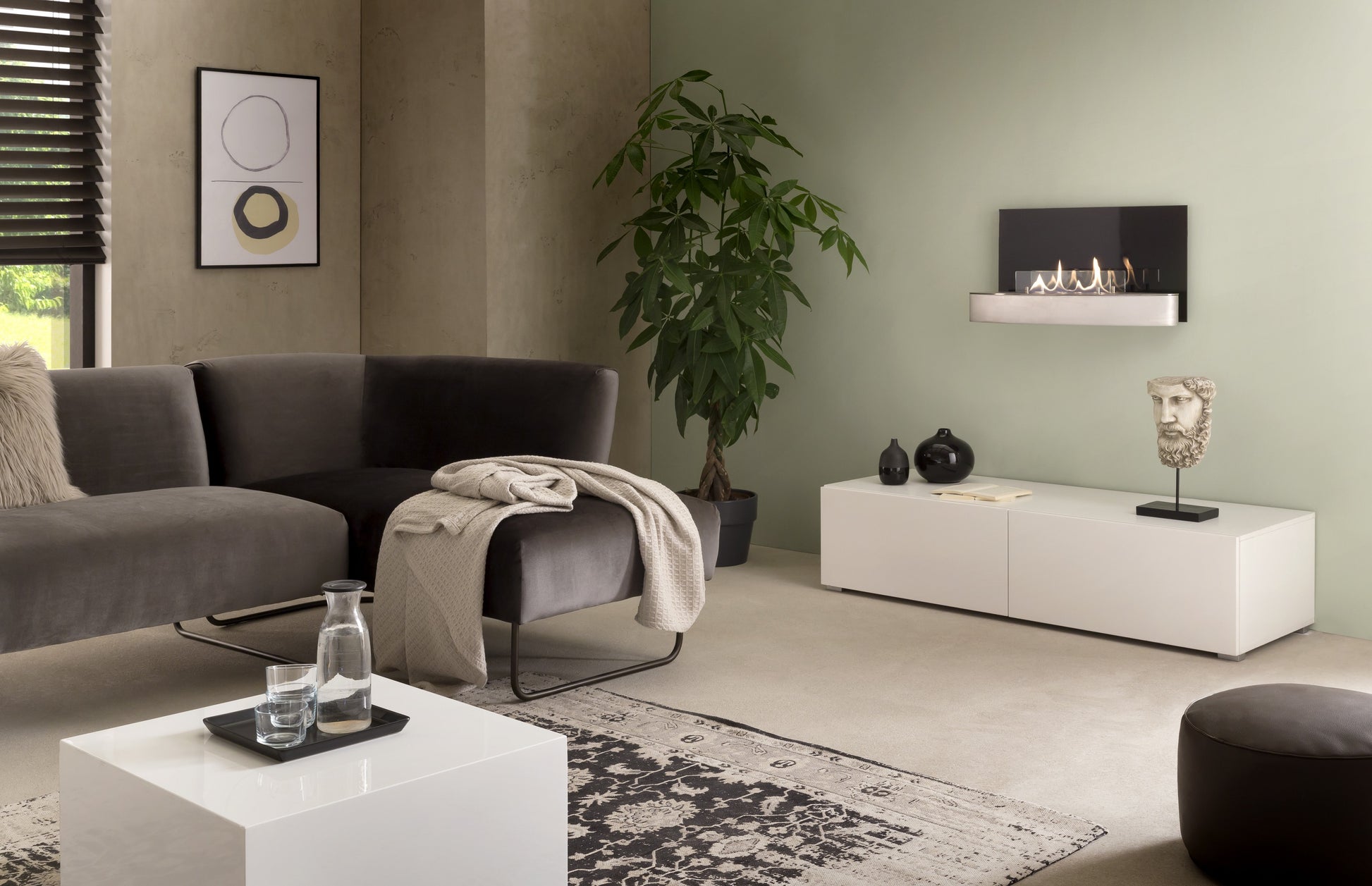 Bei dem Wandkamin Elipse Wall des Herstellers ebios-fire handelt es sich aufgrund der runden und zugleich eckigen Elemente um ein geometrisches Meisterwerk. Die Kombination aus Material, Form und Farbe rückt die Brennerflamme ins Rampenlicht und schafft so ein echtes Highlight.