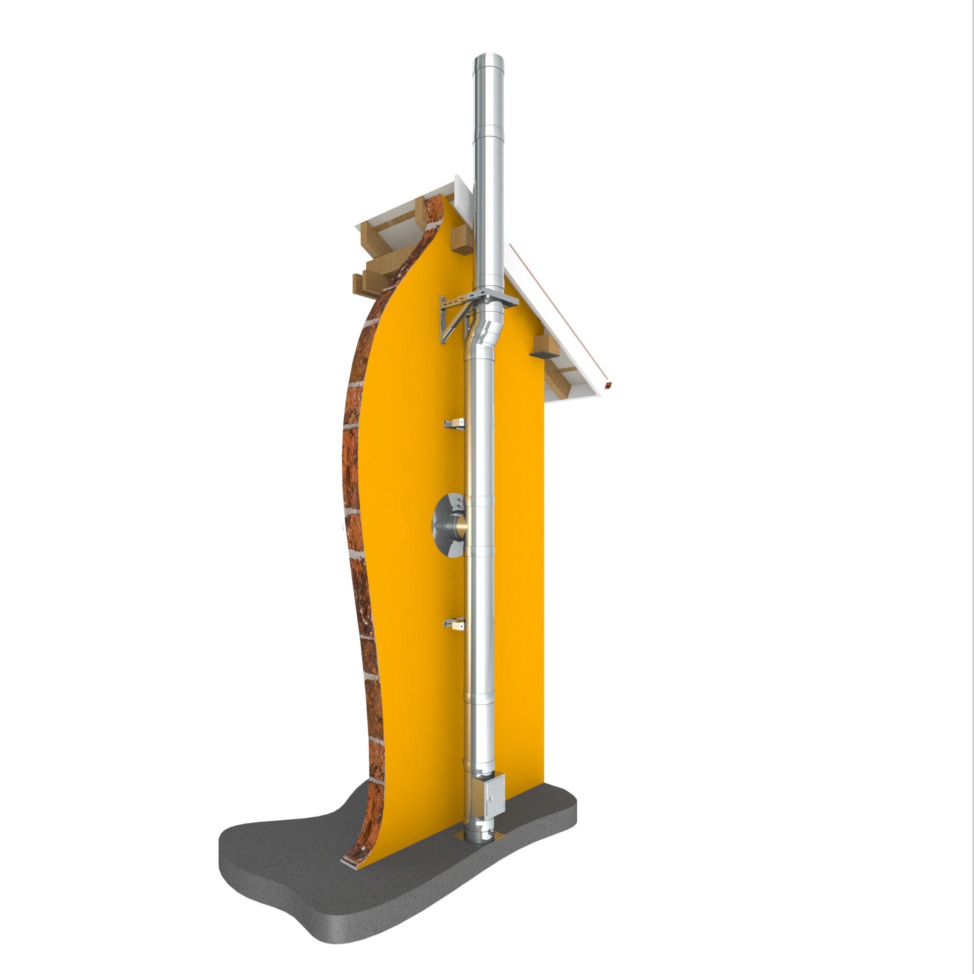 Das Schornsteinpaket DW-ECO 2.0 ist eine doppelwandige Systemabgasanlage aus Edelstahl für alle Regelfeuerstätten im Unterdruckbetrieb in trockener oder feuchter Betriebsweise. Entwickelt für alle Brennstoffarten wie Gas, Öl, Pellets oder Holz bei privaten, gewerblichen oder industriellen Anwendungen. Maximale Betriebstemperatur von 600 °C im Rußbrand bis 700 °C und Rußbrandbeständigkeit bis 1000 °C.