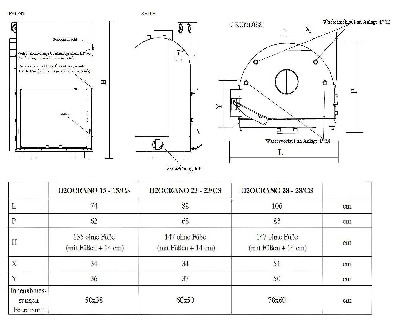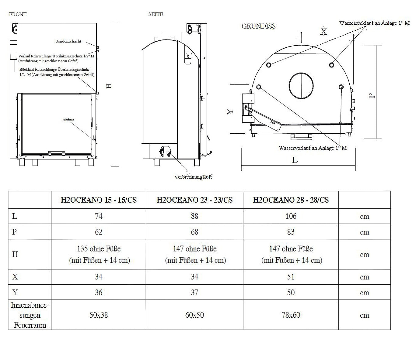 Der Kamineinsatz H2Oceano 23 mit 23 kW wurde von Edilkamin entworfen, um Wasser durch eine automatische Verbrennung von Holz im Brennraum zu erhitzen. Das Wasser im Heizkamin wird erwärmt und an die Heizanlage geschickt, er beheizt außerdem den Raum in dem er sich befindet durch Abstrahlung mit natürlicher Konvektionswärme. Das Wasser wird erwärmt, indem es im Zwischenraum des Kamineinsatzes zirkuliert, der die gesamte halbrunde Wand und die Wölbung des Feuerraums umspült. Durch diese besonders große Wasserkammer wird möglichst viel Wasser für die Heizung oder Trinkwasser erhitzt und somit effektiv geheizt.