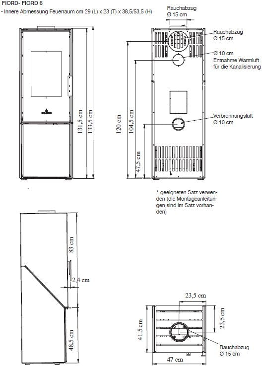 Im Zwischenraum zwischen Feuerraum und Verkleidung zirkuliert die Raum- oder Außenluft, die durch die Basis eintritt, sich beim Kontakt mit den Wänden erwärmt und in den Wohnraum austritt.