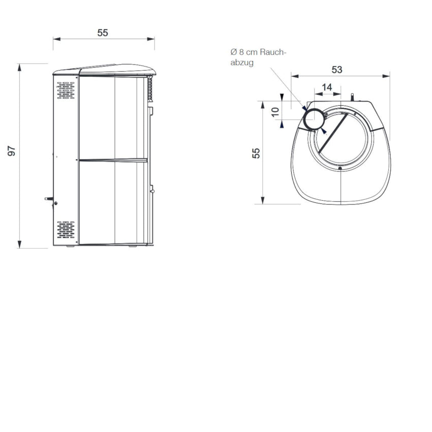 Der Aris Up2 hat eine Nennwärmeleistung von 8,2 kW und schafft es somit Räume bis zu 215 m³ (Herstellerangabe) zu beheizen. Der Pellettank fasst 15 kg Pellets und kann somit ca. 8 Stunden den Pelletofen mit Brennstoff versorgen.