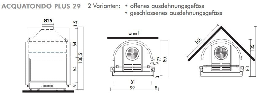 Edilkamin wasserführender Kamineinsatz Acquatondo Prismatico 29 28,1kW