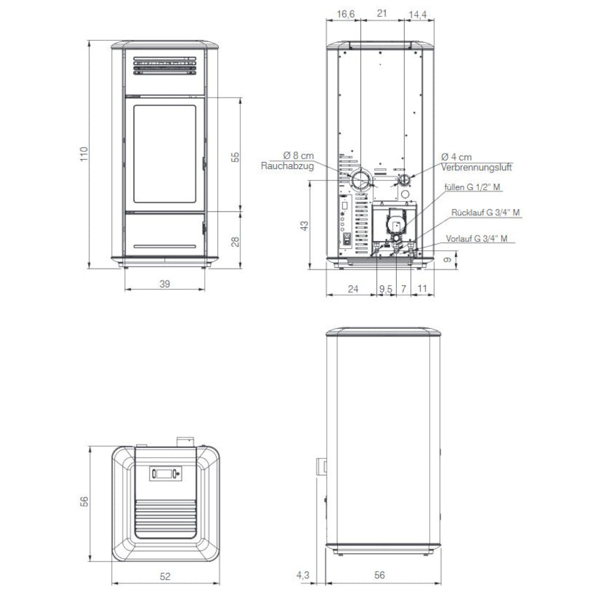 Der Milla H Pelletofen von Edilkamin überzeugt mit seiner klaren Linie und seinem zeitlosen Design. Er hat eine Leistung von 12,4 kw von denen direkt 10,2 kW in Ihr Heizwasser eingespeist werden. Zudem kann der Milla H Pelletofen dank seiner hohen Nennleistung bis zu 325 m² beheizen.