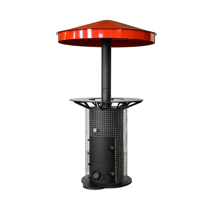 Der Heizpilz von EuroTeplo mit feuerrotem Dach | Optional mit Wunschlogo und Schutzgitter