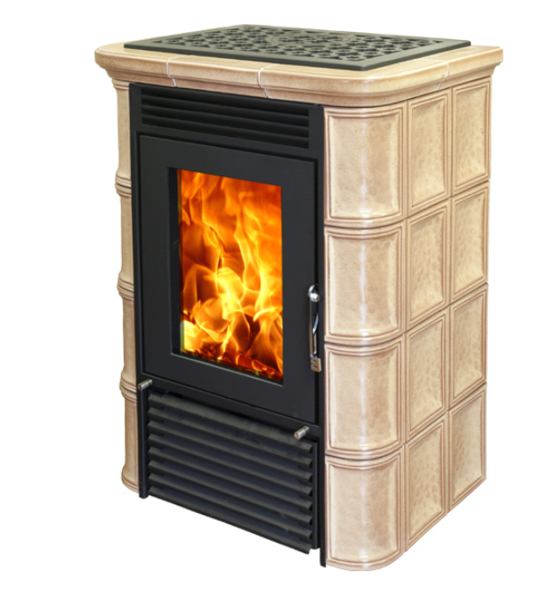 Formschöner Warmluft-Kachelofen Bristol K220 von EuroTeplo für 120 m² Wohnfläche und Farbwahl