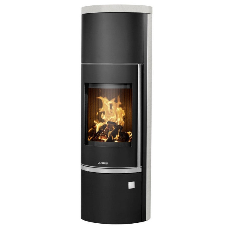 Justus | Kaminofen | Faro W+ 2.0 | 7 kW | Stahl Schwarz, Kalkstein Bianco