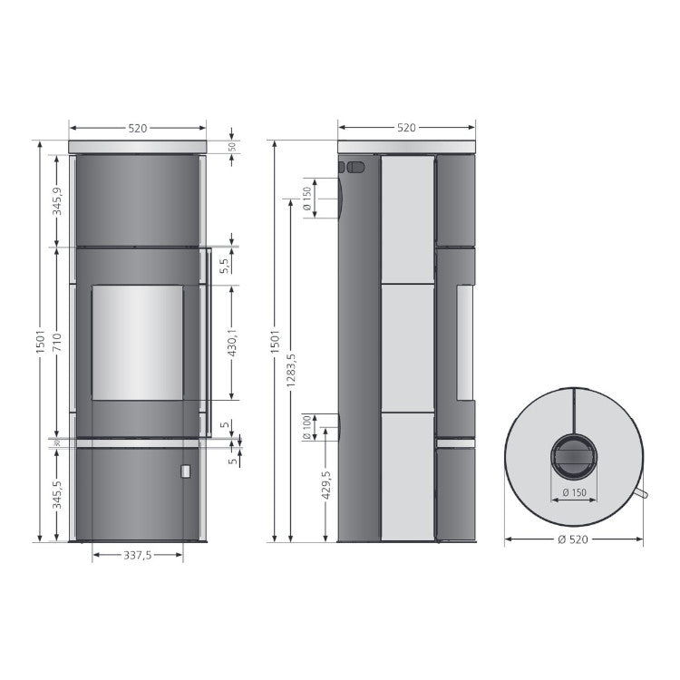 Justus | Kaminofen | Faro W+ 2.0 | 7 kW | Stahl Schwarz, Sandstein