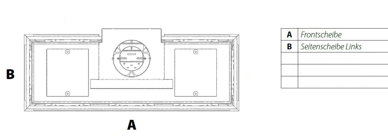 - Front A, Seite B, Seite E und hintere Scheibe D