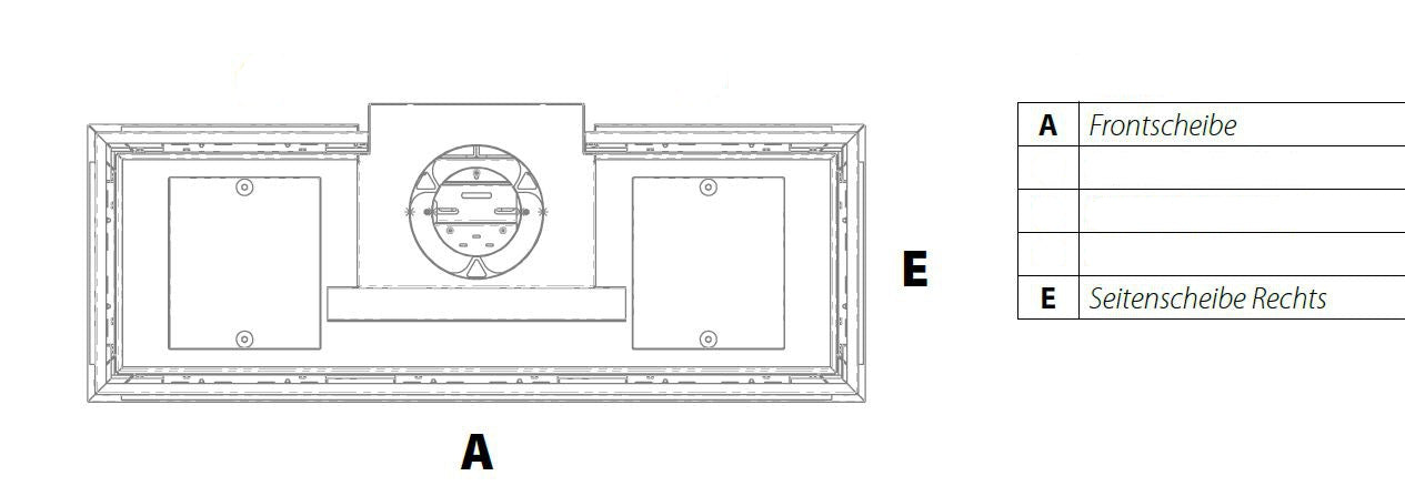 • Front A, Seite B, Seite E und hintere Scheibe C