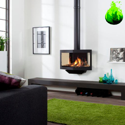 Der Stealth ist ein zeitloser Hängekamin und in den Farben Grau und Schwarz erhältlich. Die Installation des Stealths ist sehr einfach. Das Feuer können Sie von drei Seiten aus bewundern.