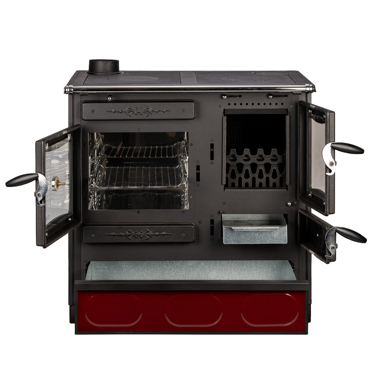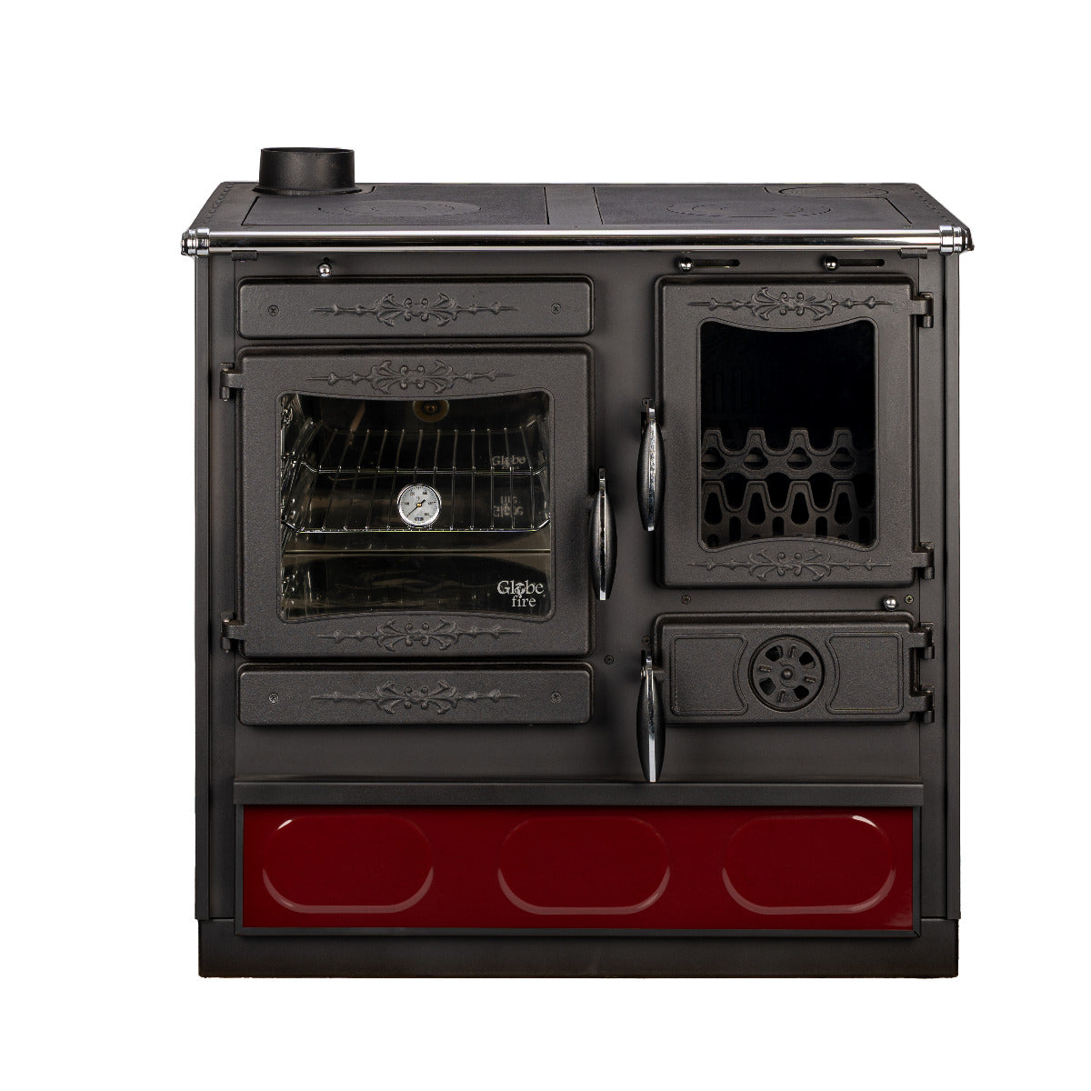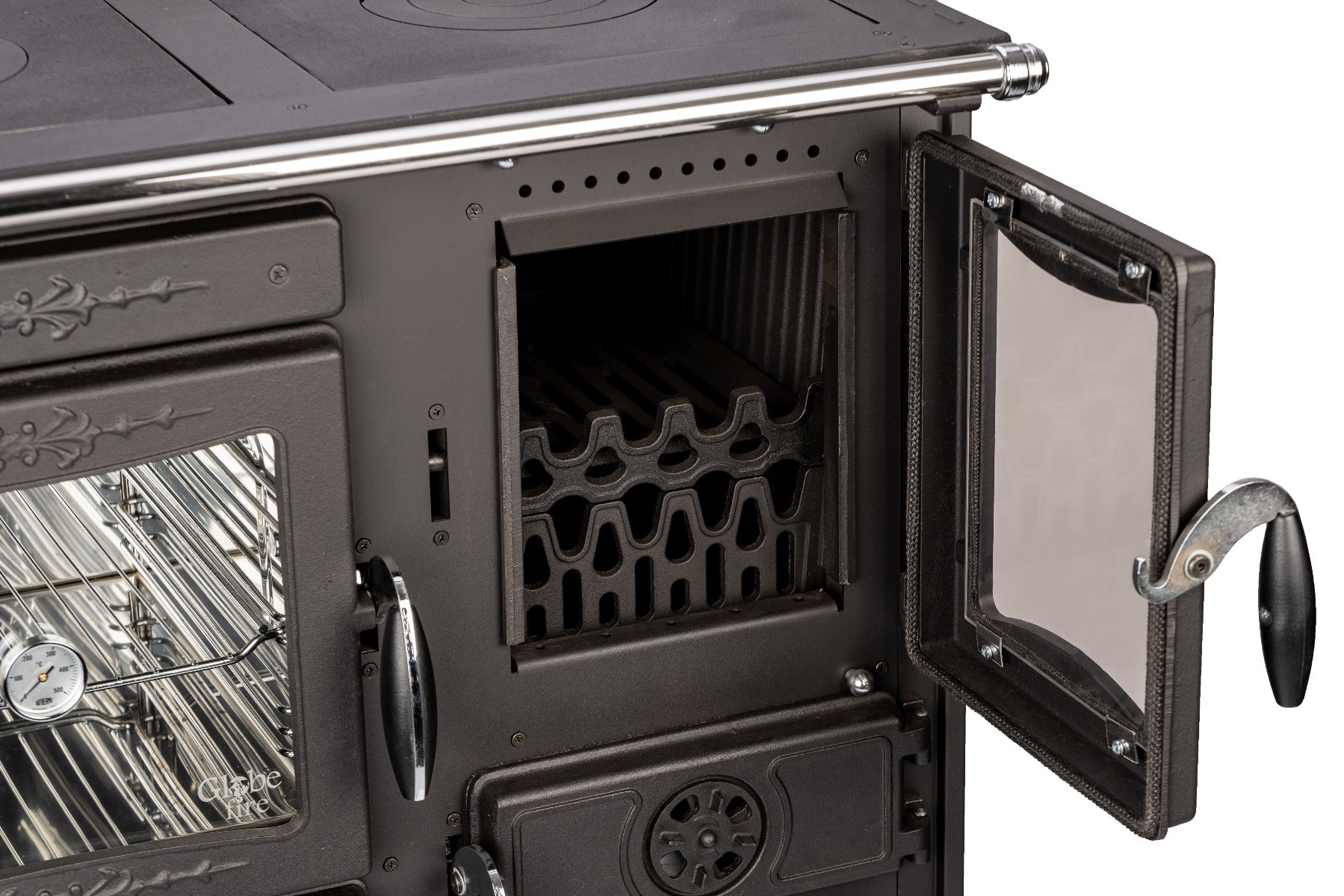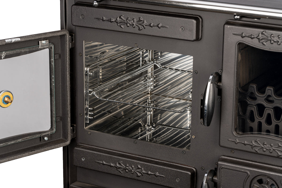 Der Küchenofen Alhena der Marke Globefire ist mit einem Sommer und einem Winterrost ausgestattet. Damit haben Sie die Möglichkeit den Feuerraum im Sommer um ca. 50 % zu reduzieren und so mit weniger Brennstoff Kochen und Backen zu können. Im Winter nutzen Sie dann den kompletten Feuerraum.