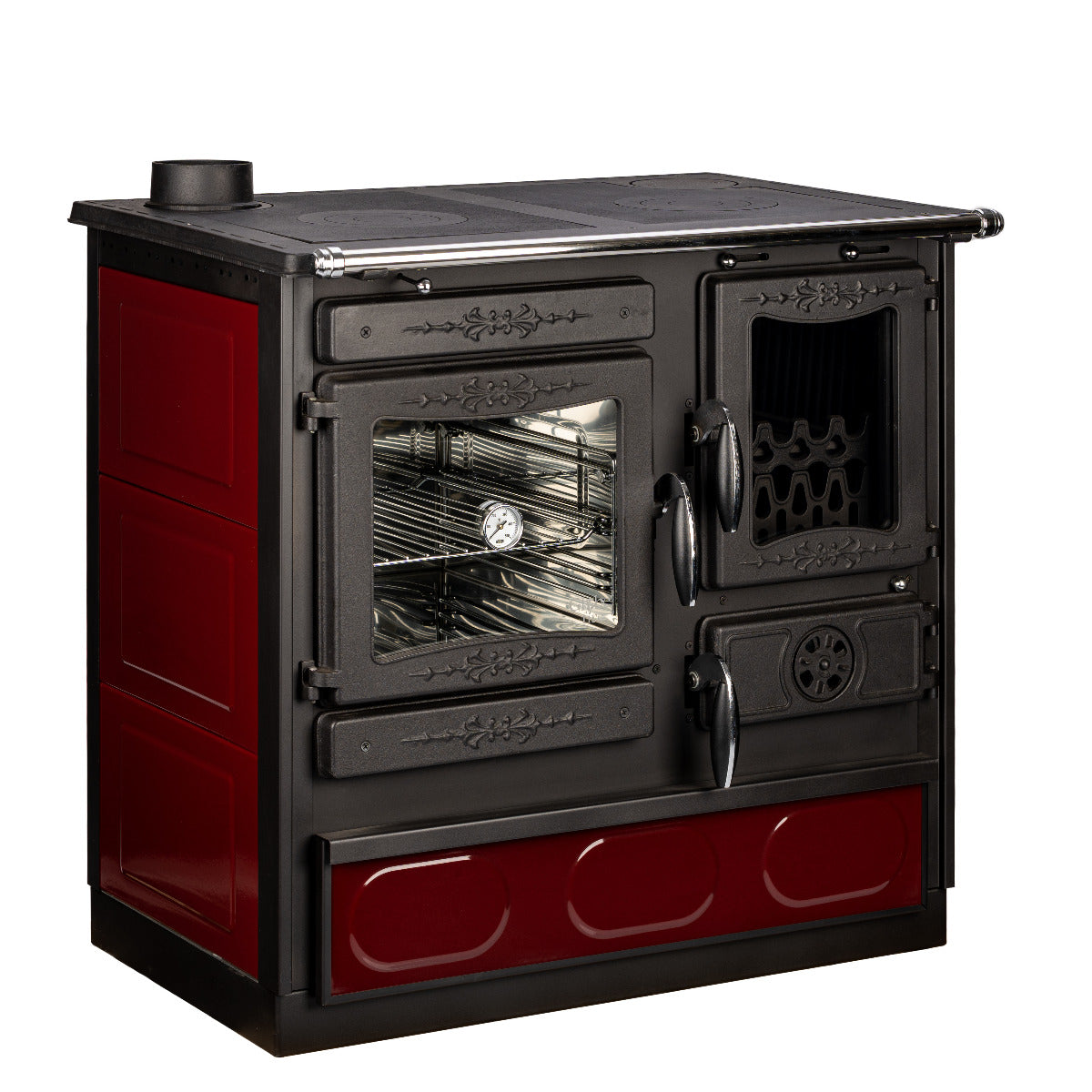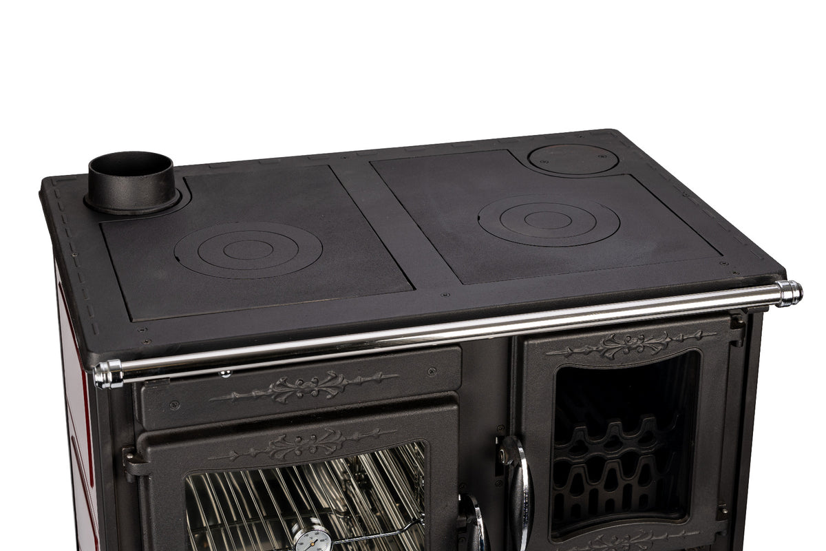 Globefire Küchenofen Alhena bordeaux Anschluss links | 7 kw