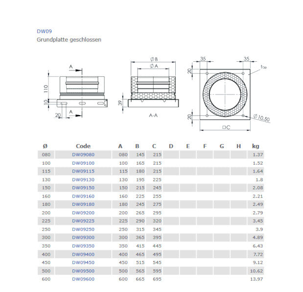 Jeremias doppelwandige Schornsteingrundplatte geschlossen