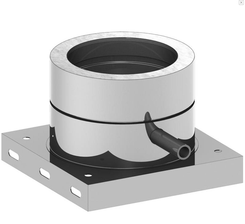 Grundplatte mit 1/2' Außennippel, Verschlusskappe und Kondensatablauf seitlich vom Jeremias ist geeignet zur Installations des Schornsteines für Wandmonatge.