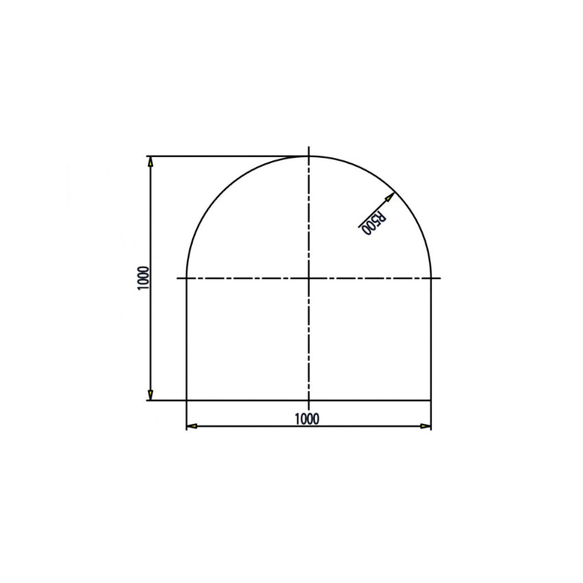 • Maße: 1000 x 1000 mm, R= 580 mm, quadratisch mit Rundbogen