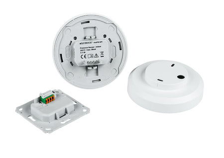 Wenn der Präsenzmelder an der Decke montiert ist, zeichnet er selbst kleinste Bewegungen wie das Tippen auf einer Tastatur in einem Radius von bis zu 3,5 m und einem Erfassungswinkel von ca. 105 ° auf. Gröbere Bewegungen werden in einem Radius bis 7 m erfasst. Der integrierte Dämmerungssensor erkennt auch Helligkeitsänderungen. Dies bedeutet, dass die Beleuchtung automatisch eingeschaltet werden kann, wenn eine Bewegung erkannt wird. Der Präsenzmelder eignet sich auch als empfindlicher Sensor zur Alarmerkennung.