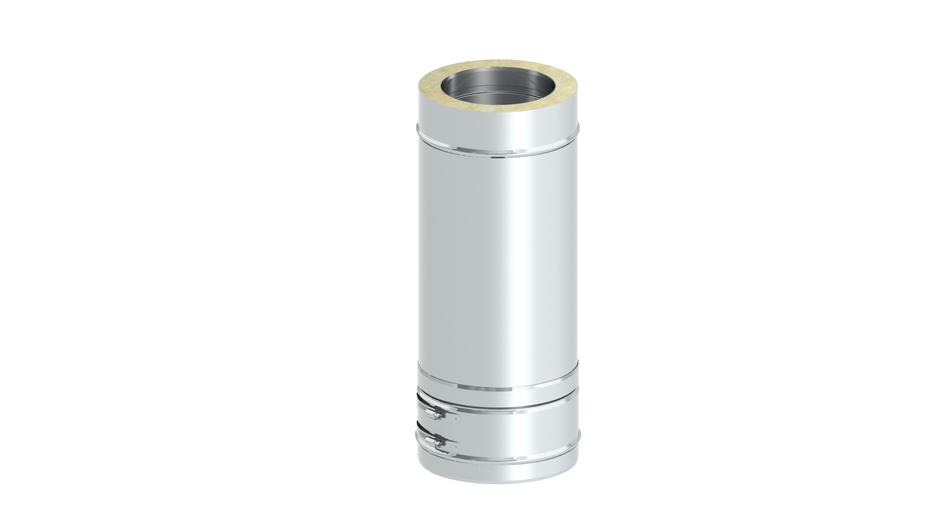 Das Edelstahllängenelement hat eine Länge von 500 mm und ist über die gesamte Länge durch eine 32,5 mm starke Isolierung gedämmt. Dieses Längenelement kann mit allen anderen Bauteilen des gleichen Durchmessers kombiniert werden, um ein wirkungsvolles und sicheres Ableiten der Rauchgase zu gewährleisten.