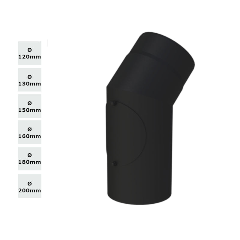 Jeremias Ofenrohr | Winkel 45° mit Tür | schwarz | Øwählbar