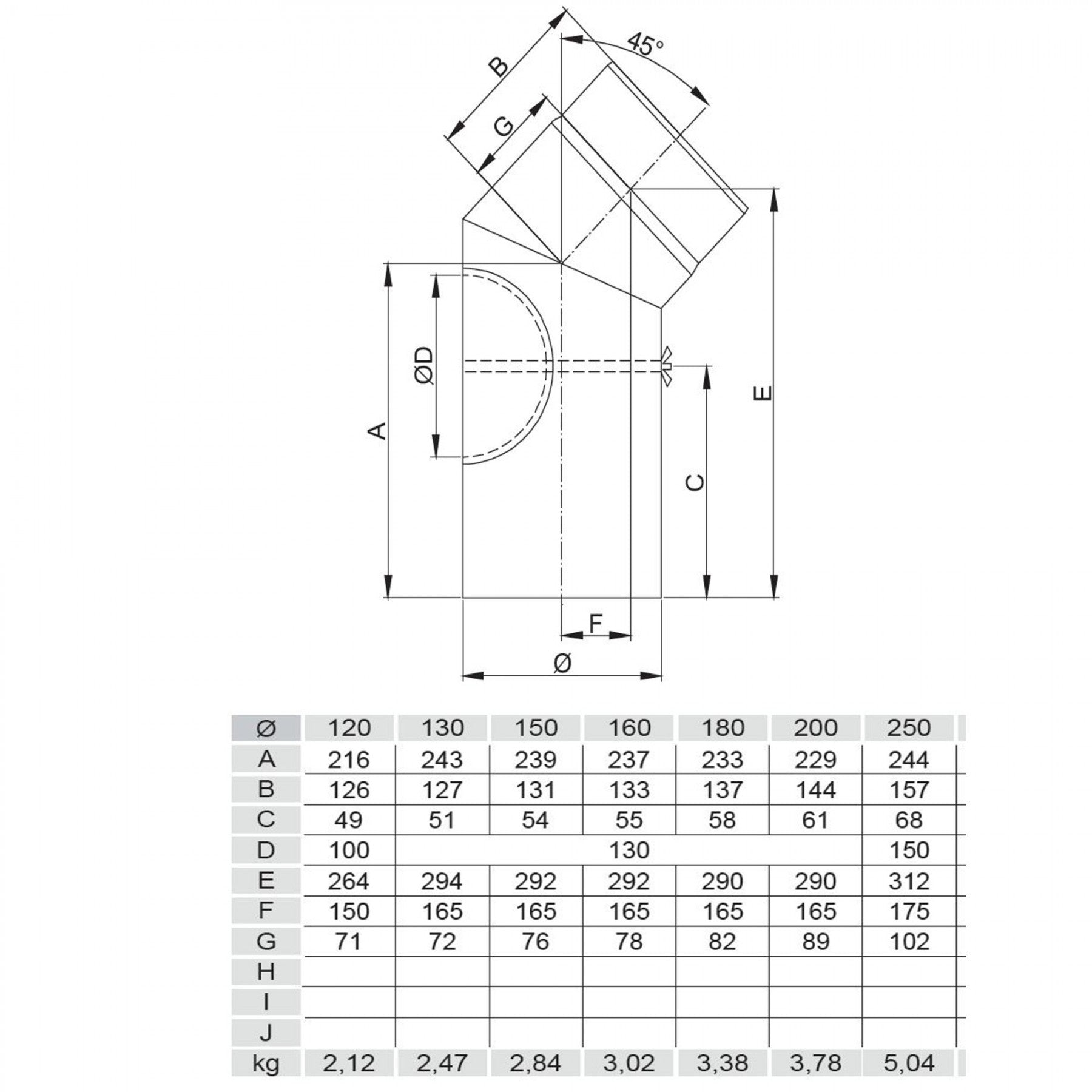 Jeremias Rauchrohrbogen, Winkel 45° mit Tür