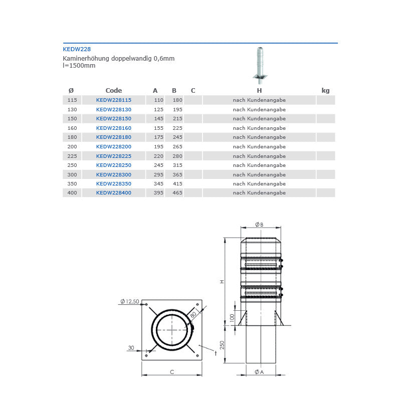 Jeremias Kaminerhöhung DW-System 1500 mm