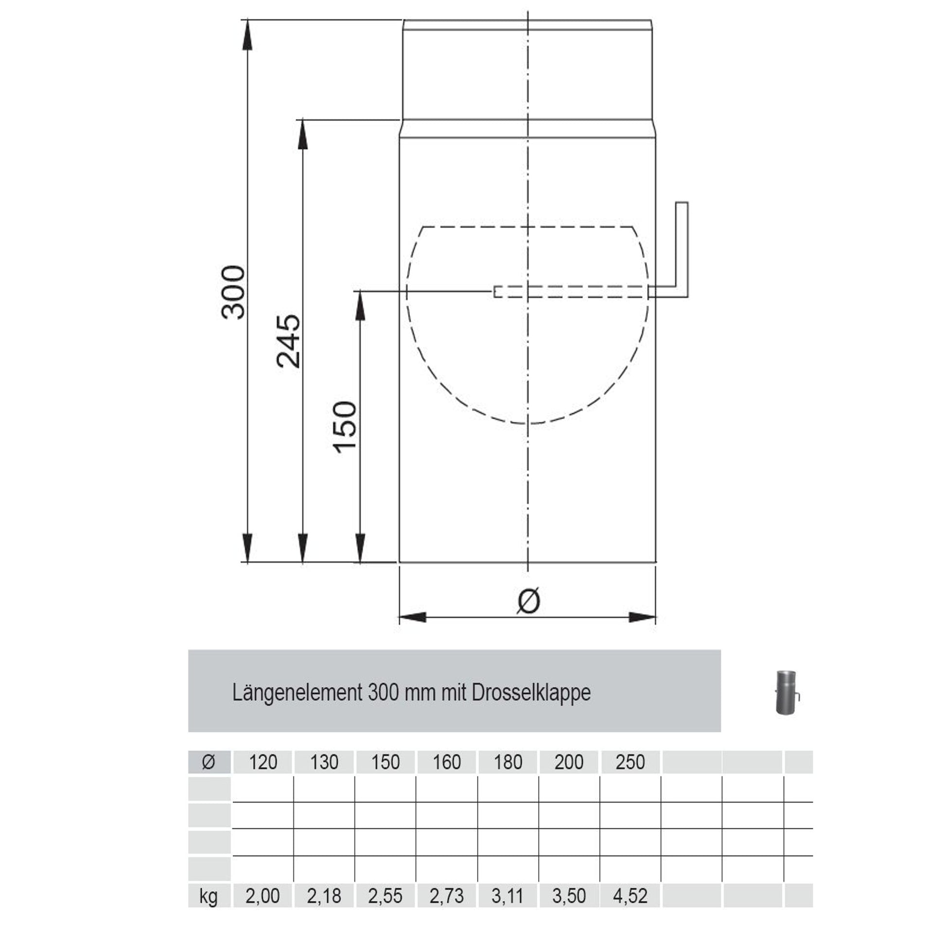 Jeremias Ofenrohr Längenelement 300mm+Drosselklappe schwarz | Øwählbar