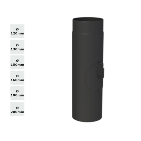 Jeremias Ofenrohr Längenelement 500mm+Drosselklappe schwarz | Øwählbar
