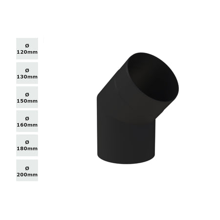 Jeremias Ofenrohr/Winkel 45° ohne Reinigungstür | schwarz | Øwählbar