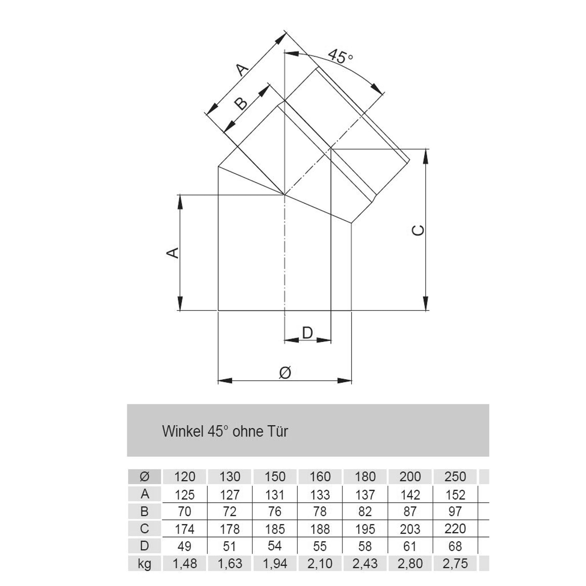 Jeremias Rauchrohrbogen, Winkel 45° ohne Tür