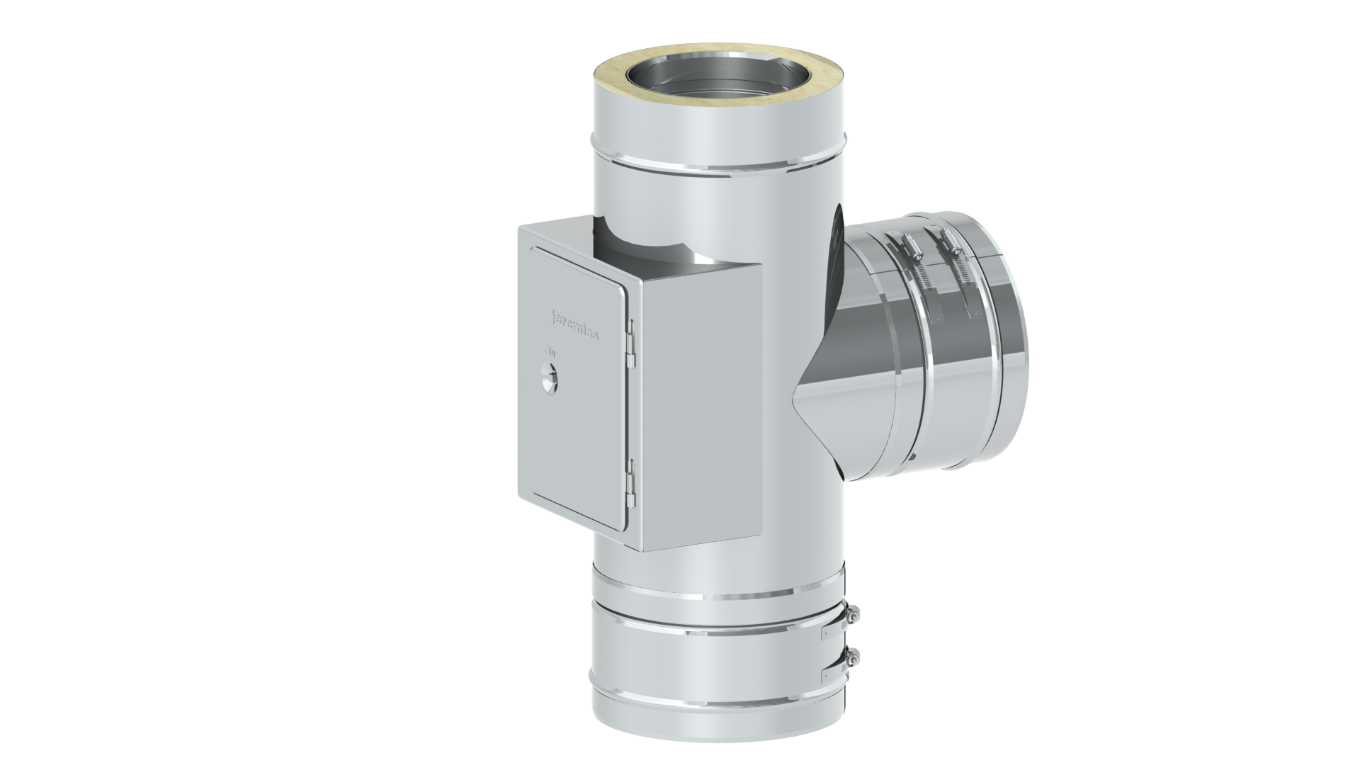 Jeremias T-Anschluss 90° mit Reinigung gegenüberliegend (gleiche Höhe)