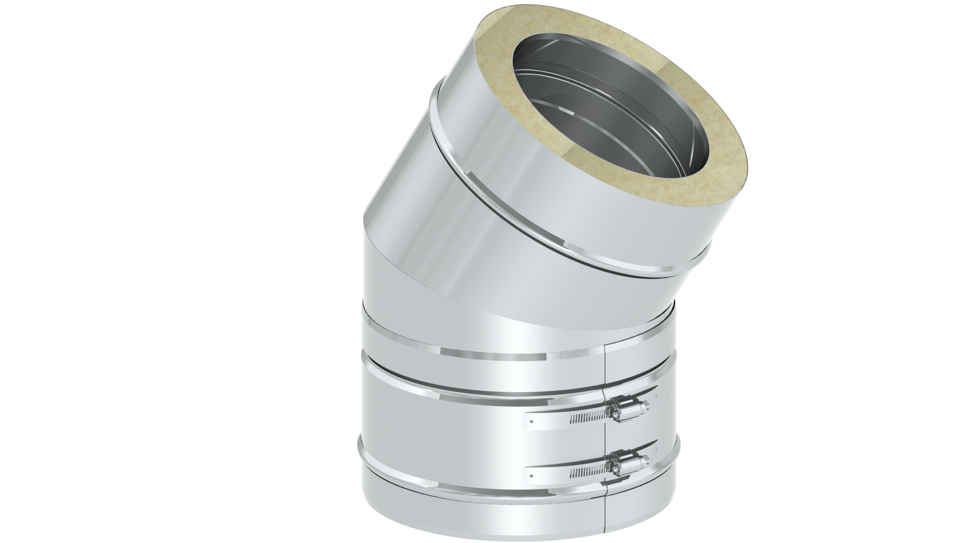 Der doppelwandige Edelstahlbogen mit einem Winkel von 30° kann mit allen anderen Teilen desselben Durchmessers kombiniert werden und schafft so die Möglichkeit das System um 30° abzuführen.