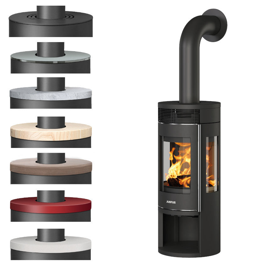 Justus | Kaminofen | Mino Trios 2.0 | 5,5 kW | Korpus Stahl Schwarz, Top Farbwahl